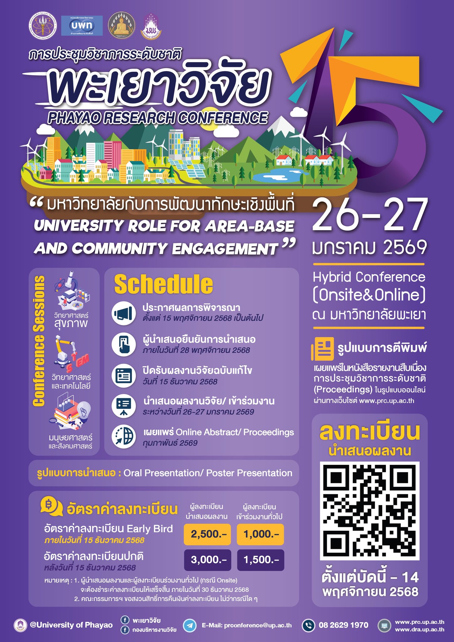 ประชุมวิชาการระดับชาติพะเยาวิจัย ครั้งที่ 15 (PHAYAO RESEARCH CONFERENCE)