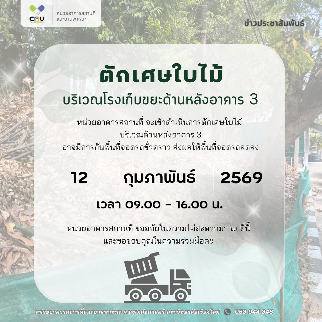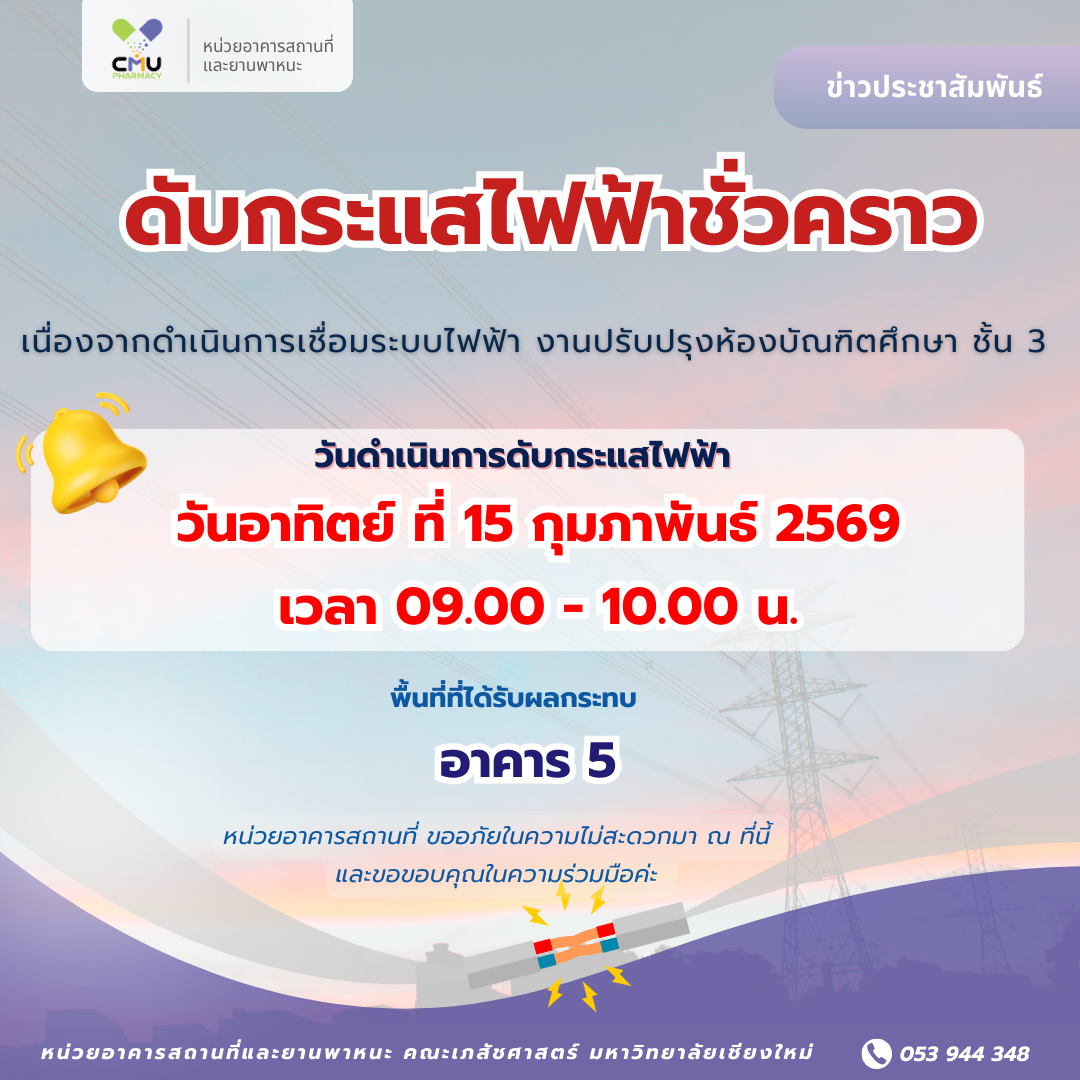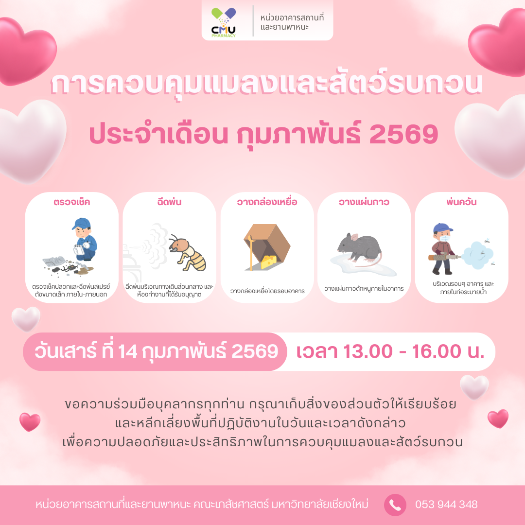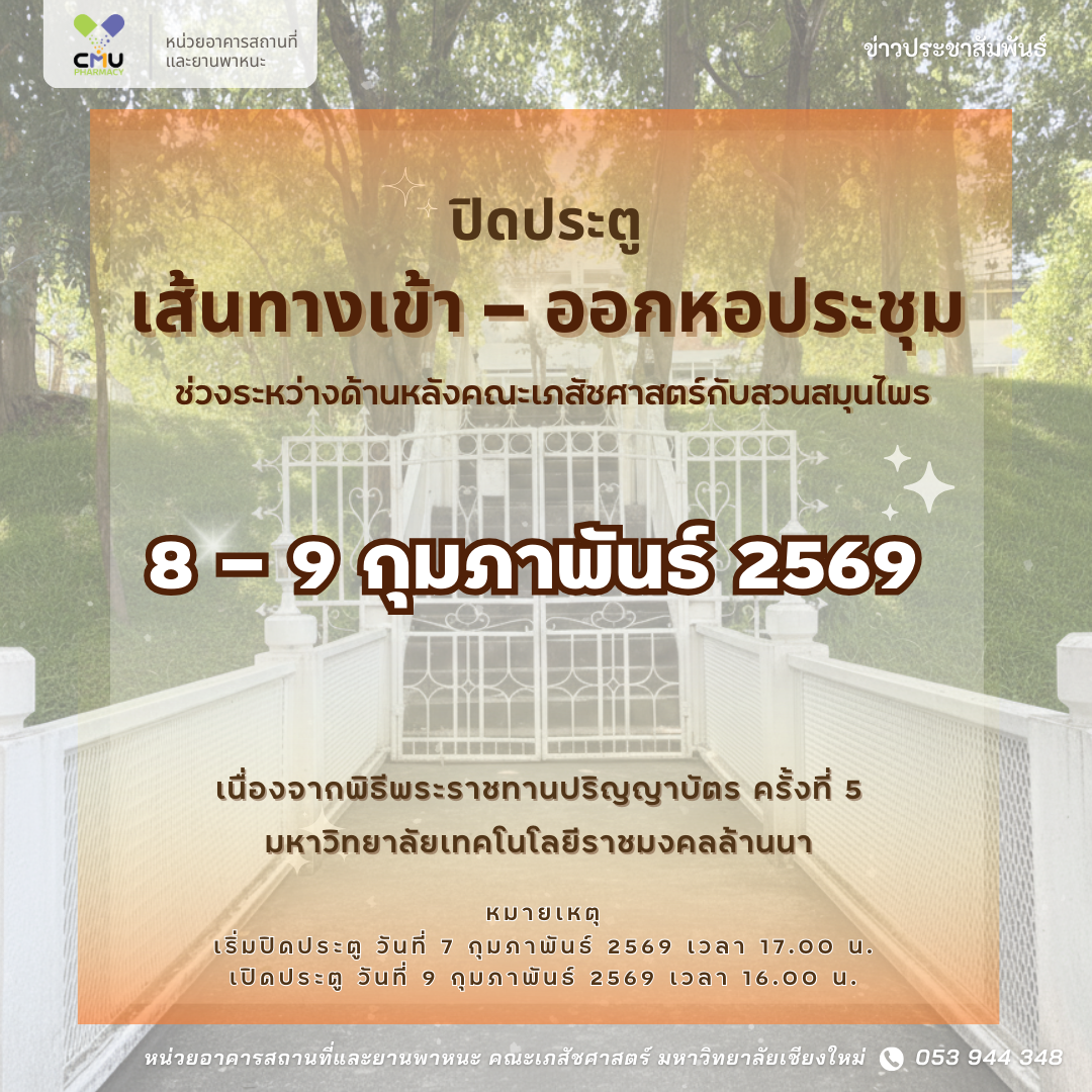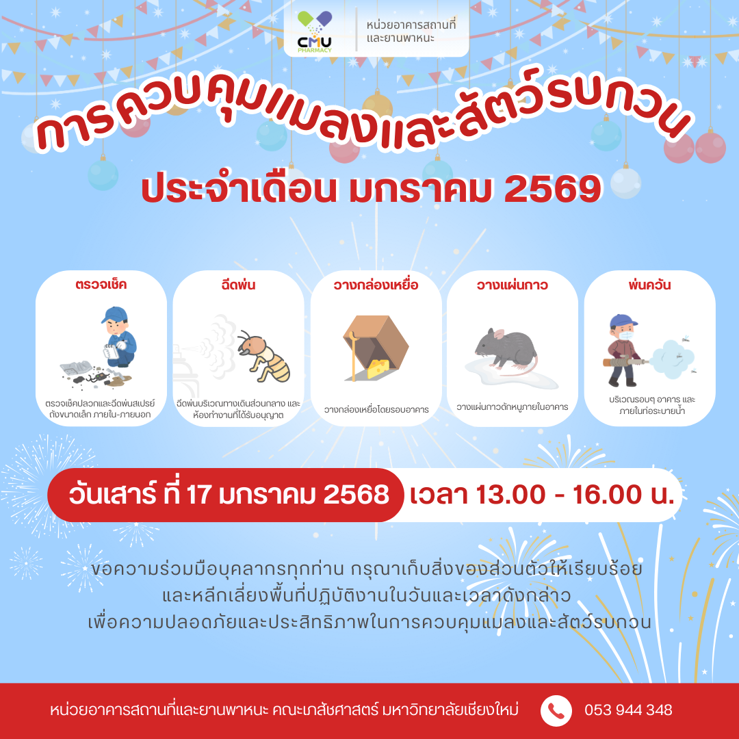 หน่วยอาคารสถานที่และยานพาหนะ จะดำเนินการล้างเครื่องปรับอากาศประจำปี 2569📅 วันเสาร์ที่ 21 กุมภาพันธ์ 2569🔹 ห้องพักอาจารย์ 4🔹 ห้องพักอาจารย์ 5🔹 ห้องพักอาจารย์ 6📅 วันอาทิตย์ที่ 22 กุมภาพันธ์ 2569🔹 ห้องปฏิบัติการชั้น 3 อาคาร 5ขออภัยในความไม่สะดวก และขอขอบคุณทุกท่านที่ให้ความร่วมมือค่ะ
