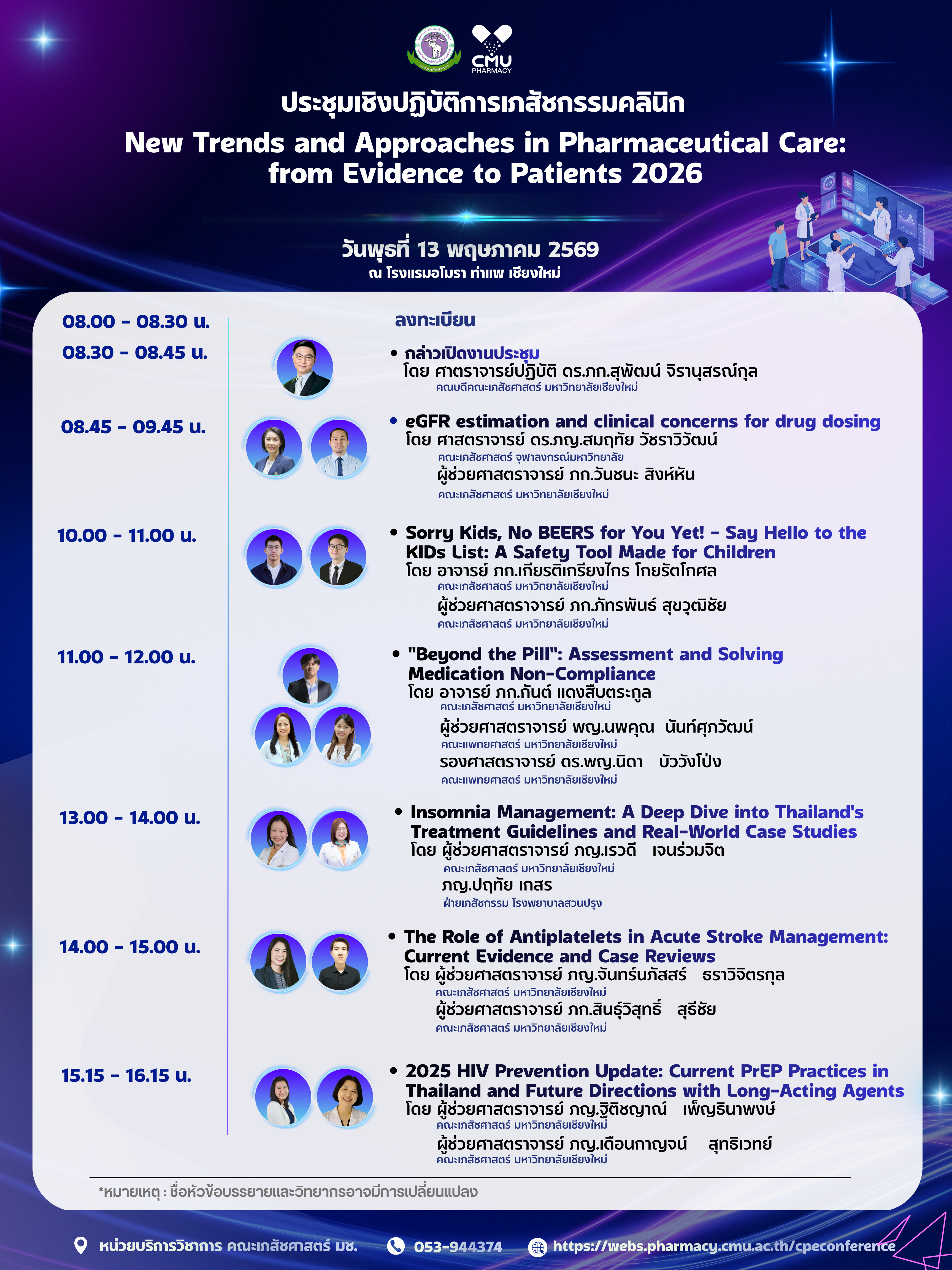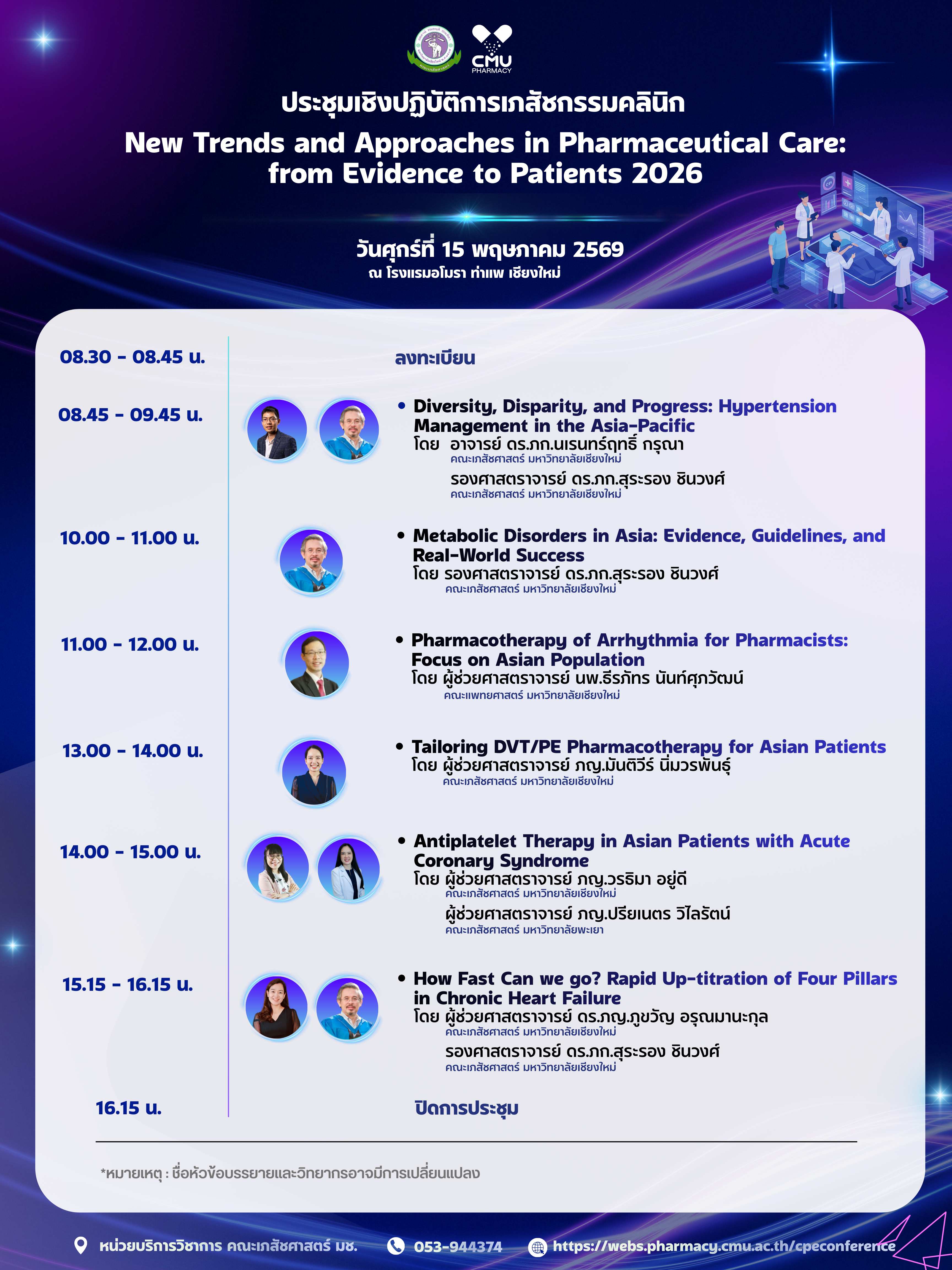 โครงการประชุมวิชาการ เรื่อง New Trends and Approaches in Pharmaceutical Care: from Evidences to Patients 2026