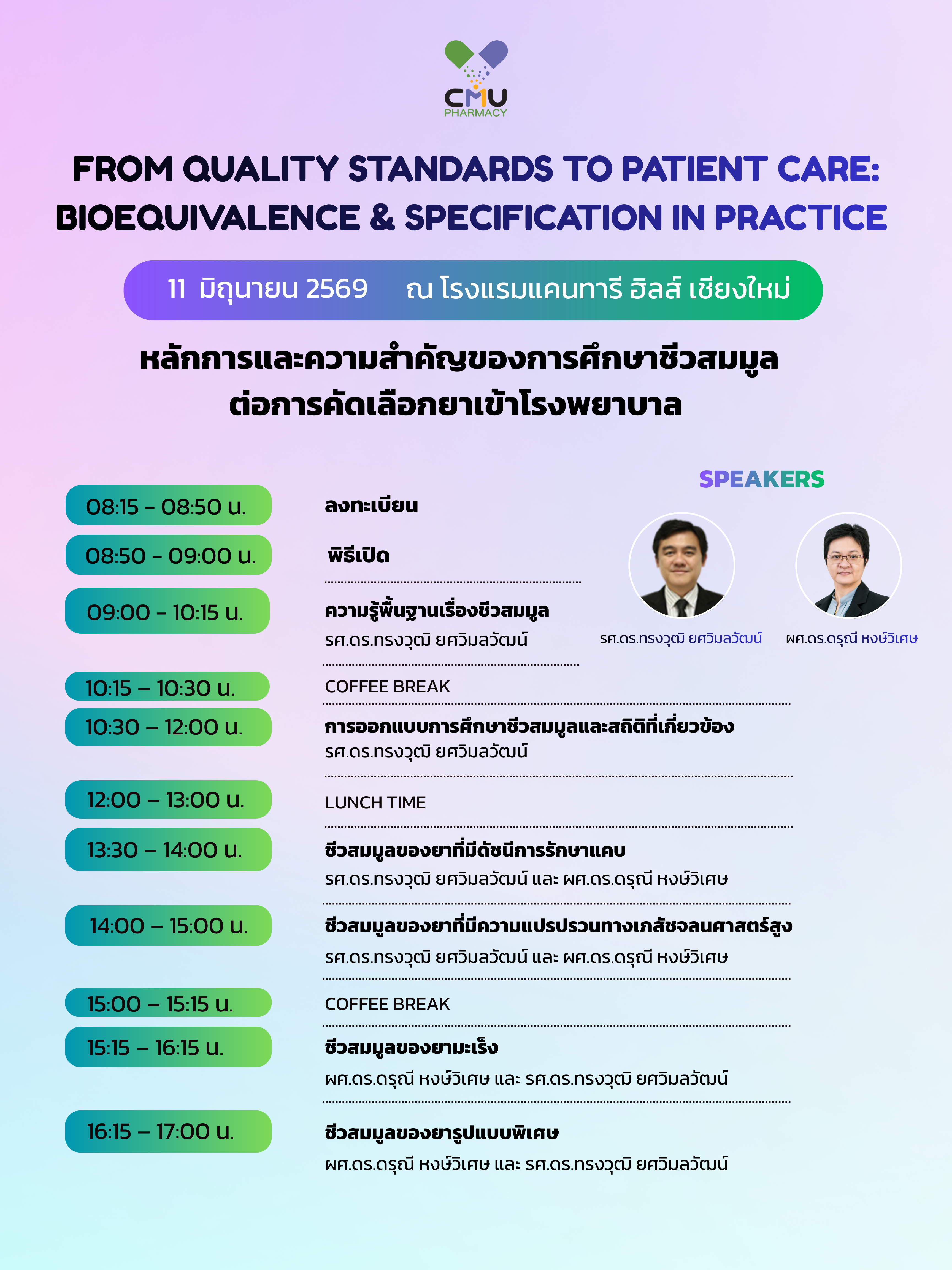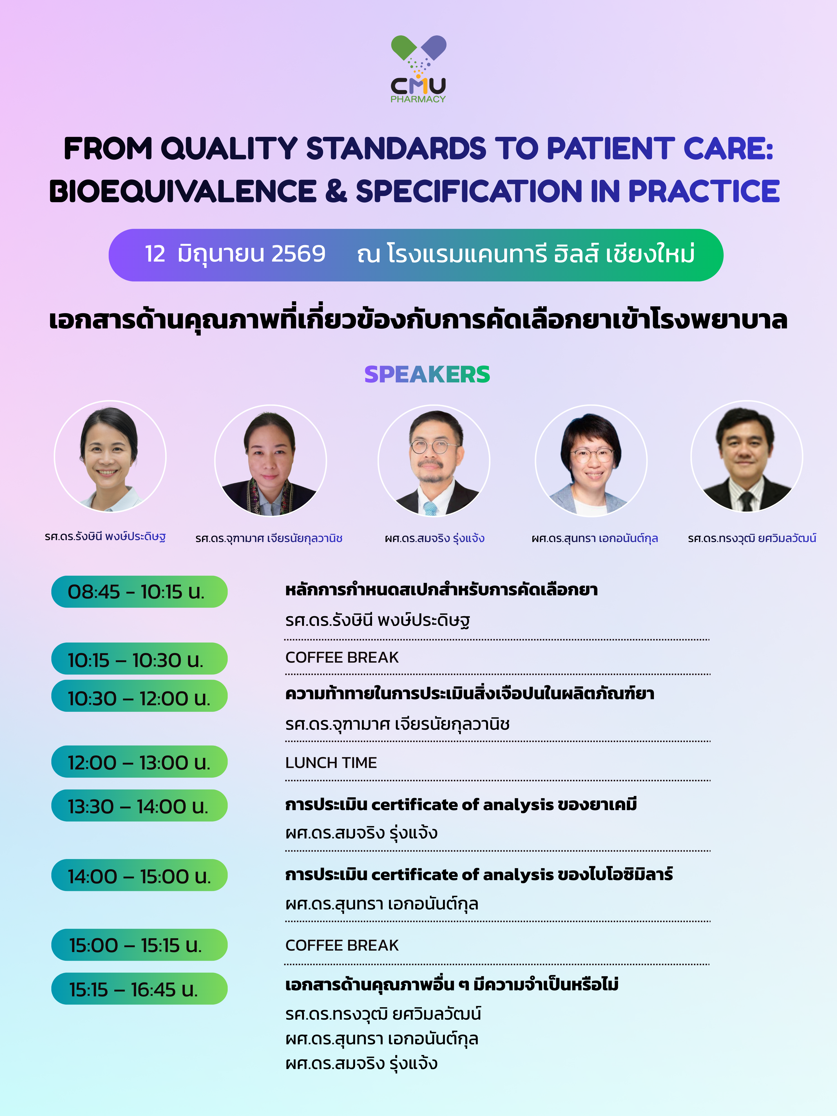 โครงการประชุมวิชาการ เรื่อง From Quality Standards to Patient Care: Bioequivalence & Specification in Practice