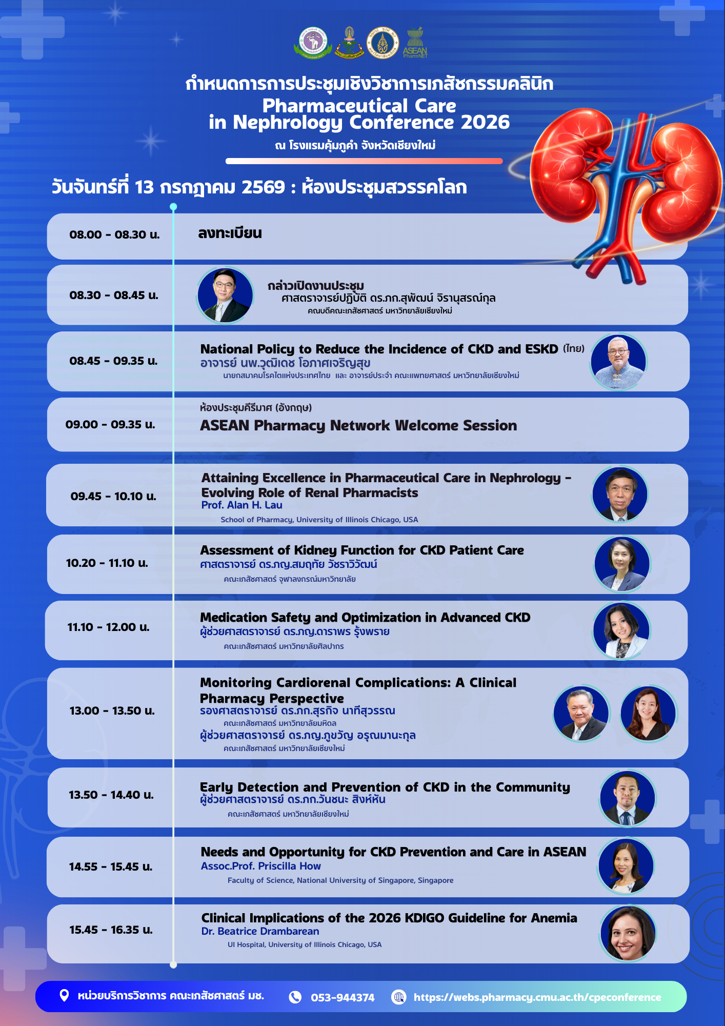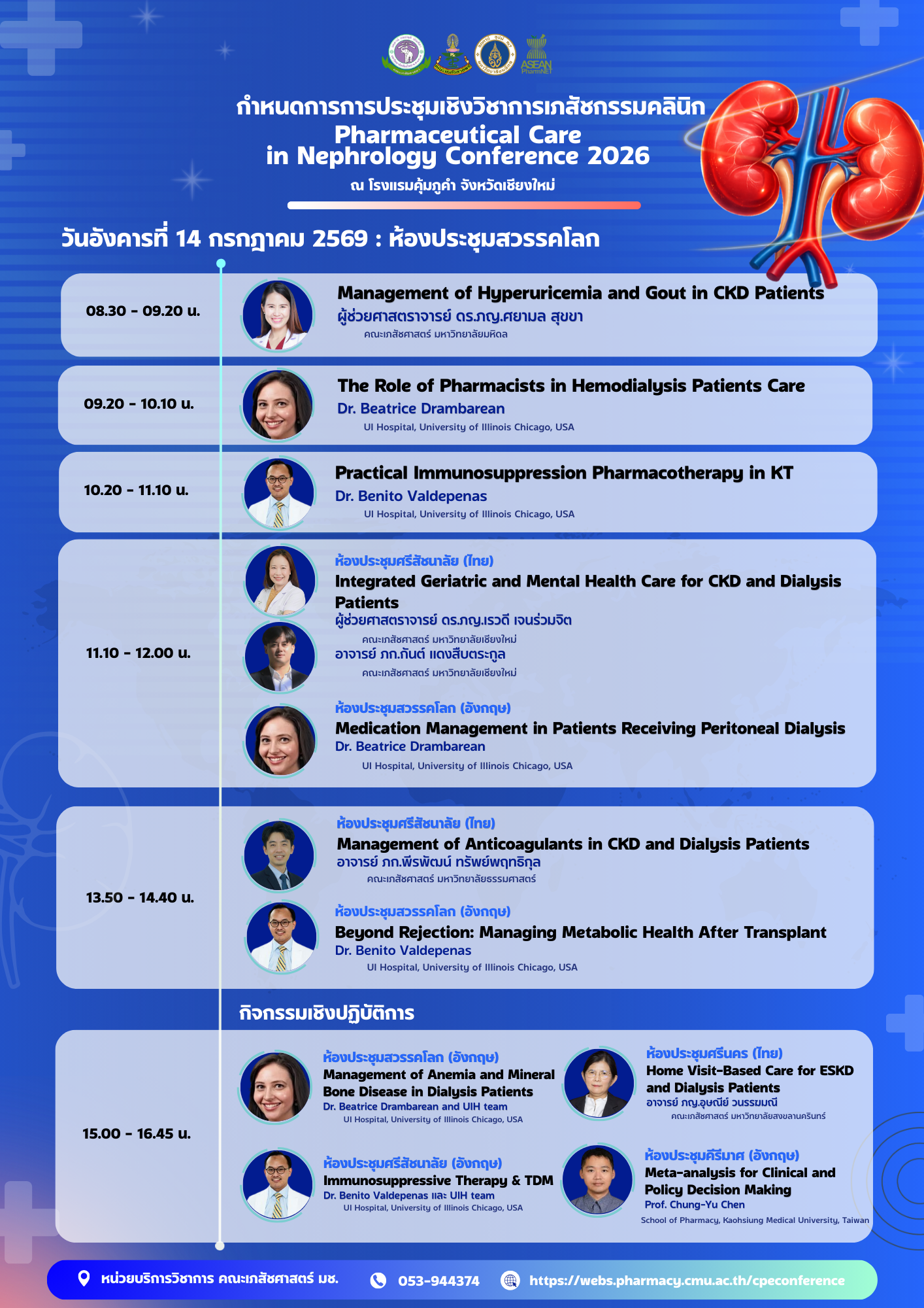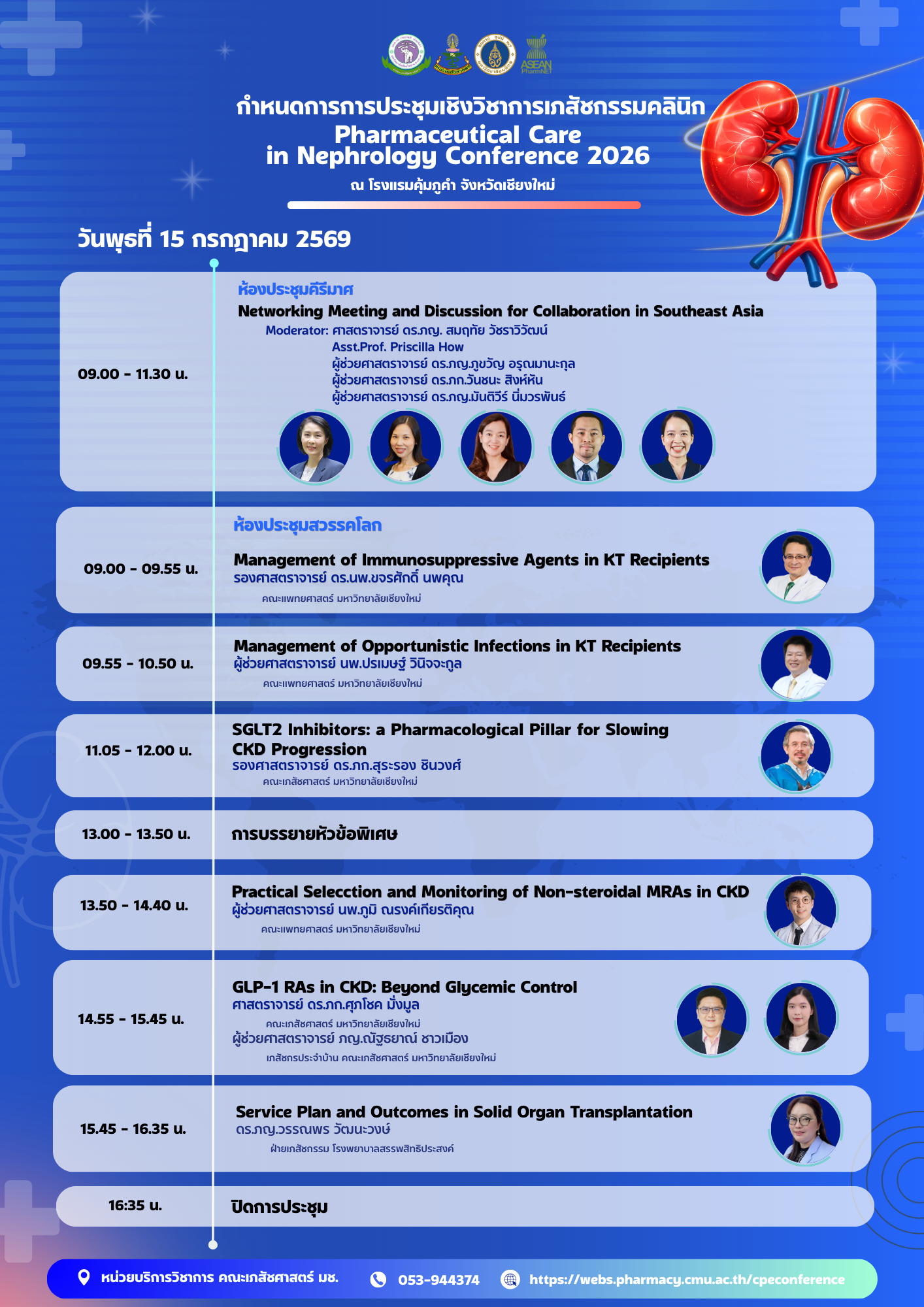 ประชุมวิชาการ เรื่อง Pharmaceutical Care in Nephrology Conference ระหว่างวันที่ 13 - 15 กรกฎาคม 2569